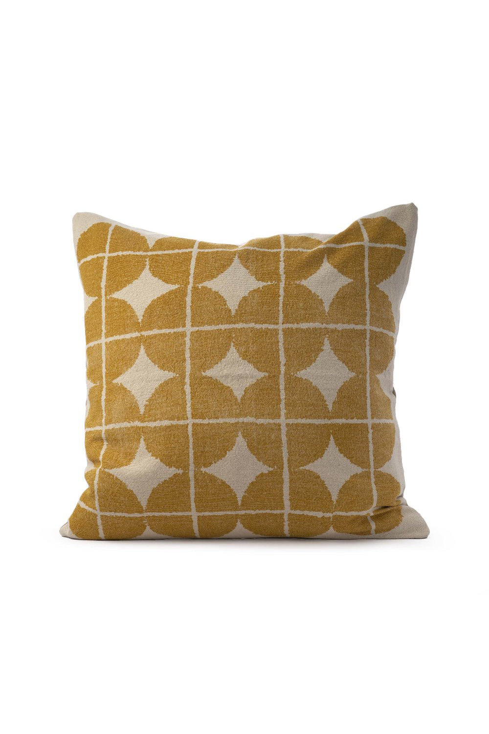 Graphic pattern printed on a pillowcase that is made of a slightly coarser cotton fabric with structure, which gives a firm, but at the same time soft impression. A pillow that is perfect to have on the sofa or in the living room.