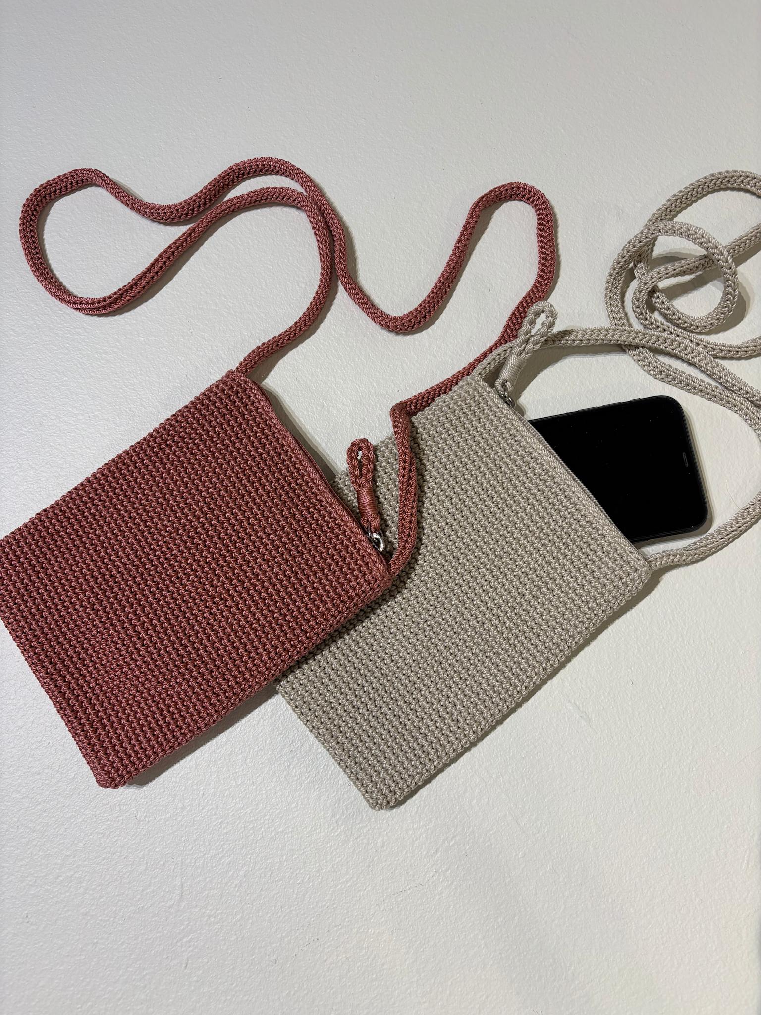 SV - Crochet Mobile Case är en virkad, mjuk och funktionell väska som bärs fint på axeln. Lämplig för din telefon och dina kort.