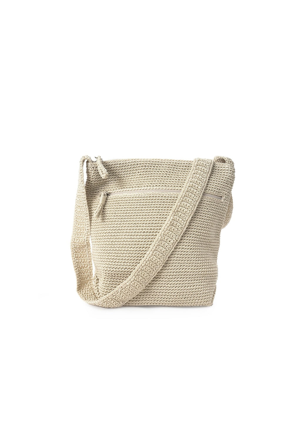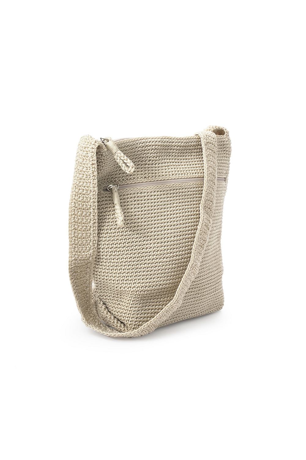 EN - Crochet Crossbody bag is a soft, functional bag that is worn nicely on the shoulder. There is a compartment inside the bag that closes with a zipper like the bag itself. Has a smaller pocket on the outside that also closes with a zipper. Sewn in key holder.