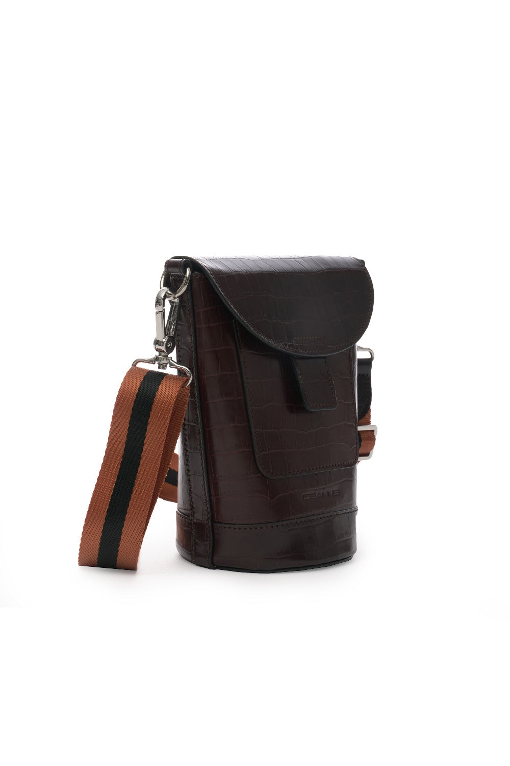 A elegant leather bag that fits perfectly in everyday life. The lid that closes the bag has a hidden magnetic lock. Two adjustable and detachable shoulder straps are included. One made from recycled PET bottles and the other in matching leather.
