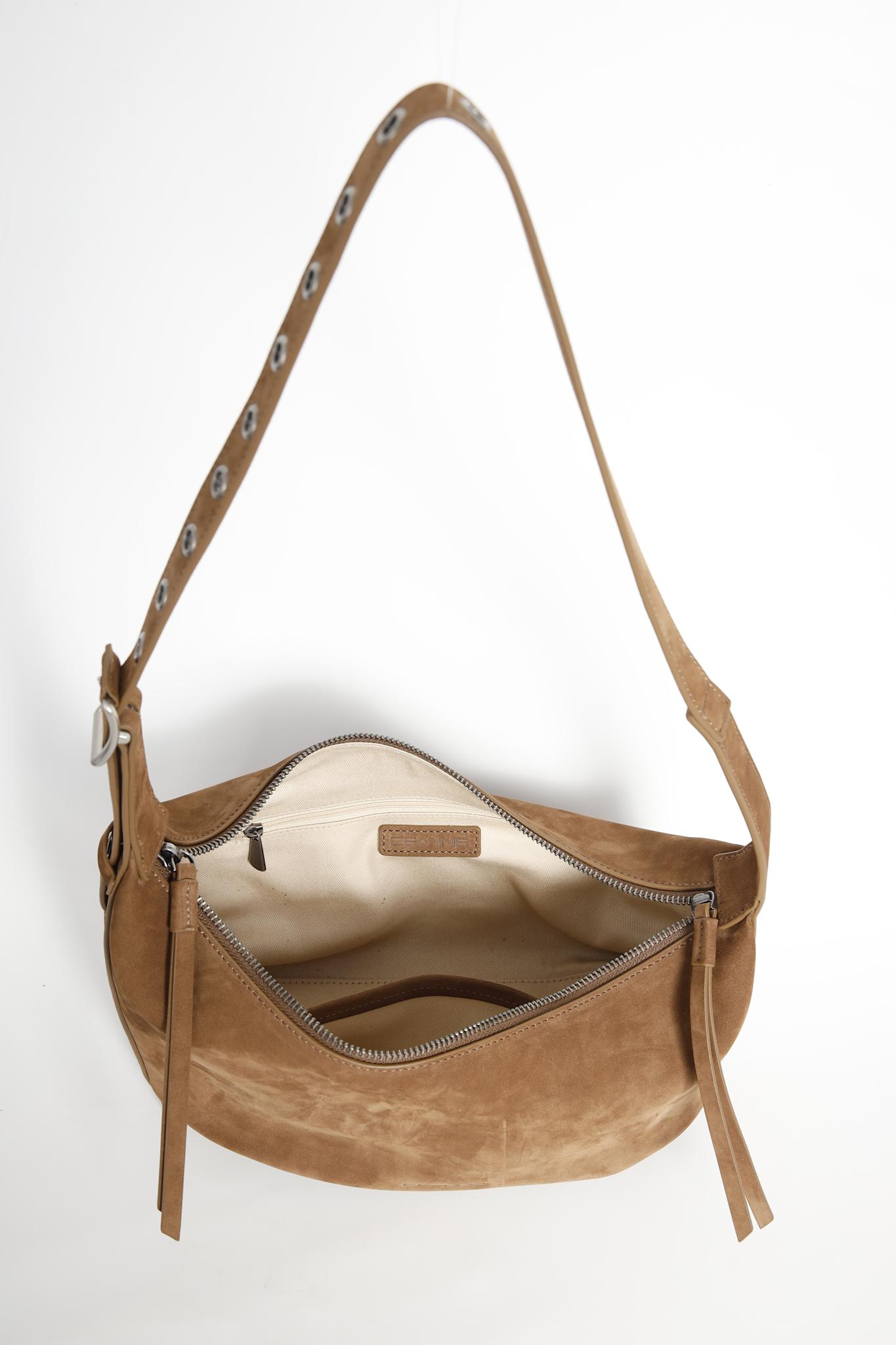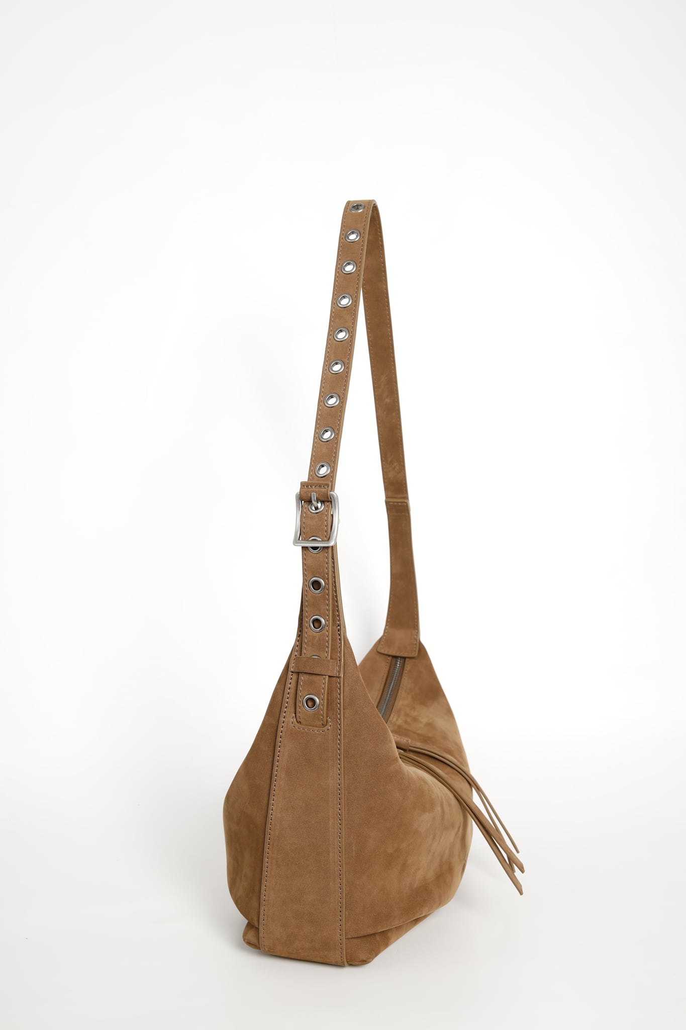 EN - Suede City Bag Small is made from premium genuine suede. This timeless bag combines understated elegance with everyday functionality. The spacious main compartment is designed with two inner pockets and closes with a zipper at the top. The shoulder strap is designed with decorative eyelets that make it adjustable.