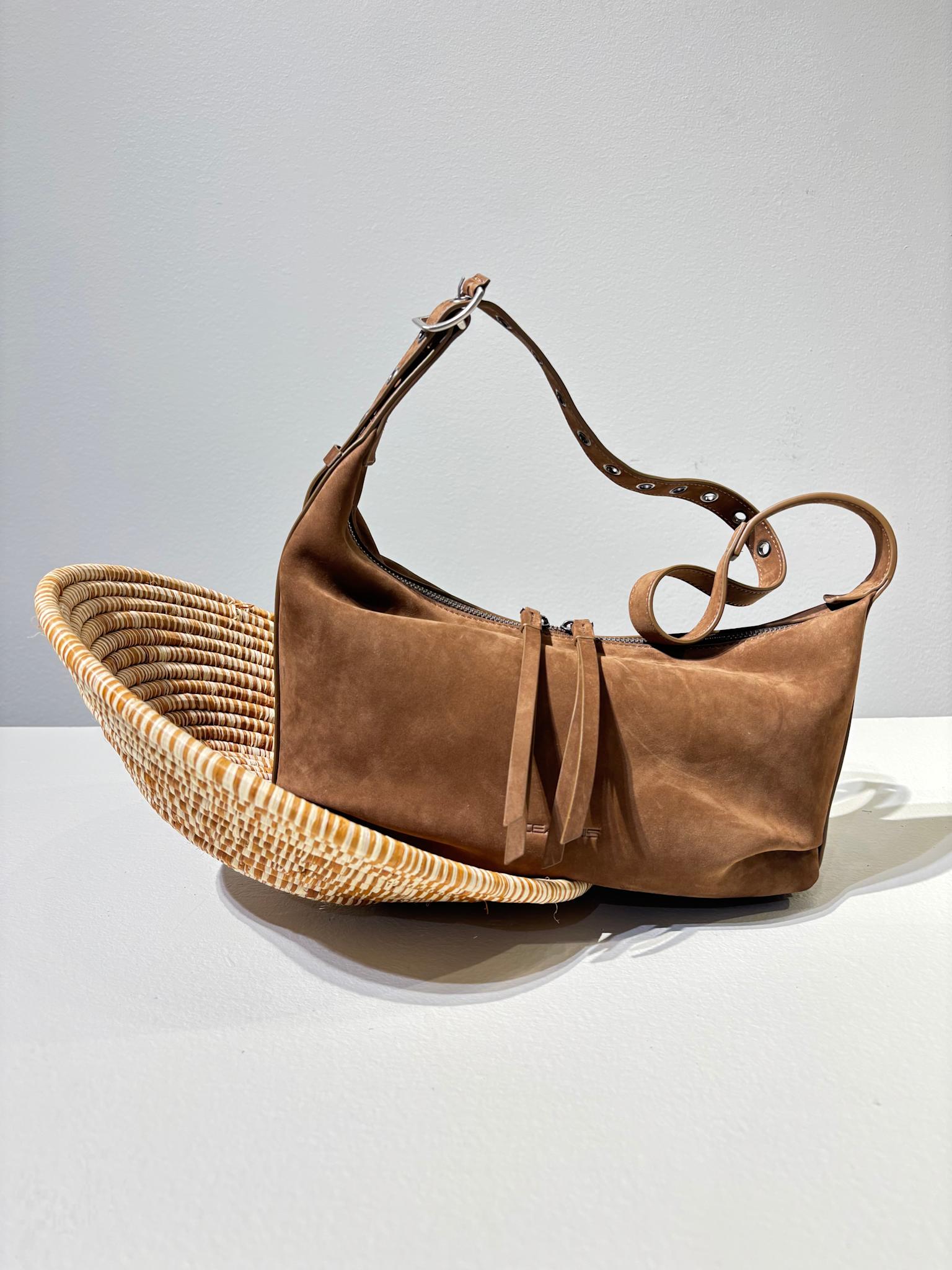 SV - Suede City Bag Small är tillverkad av äkta mocka av högsta kvalitet. Denna tidlösa väska kombinerar diskret elegans med vardaglig funktionalitet. Det rymliga huvudfacket är utformat med två innerfickor och stängs med dragkedja upptill. Axelremmen är utformad med dekorativa öljetter som gör den justerbar.